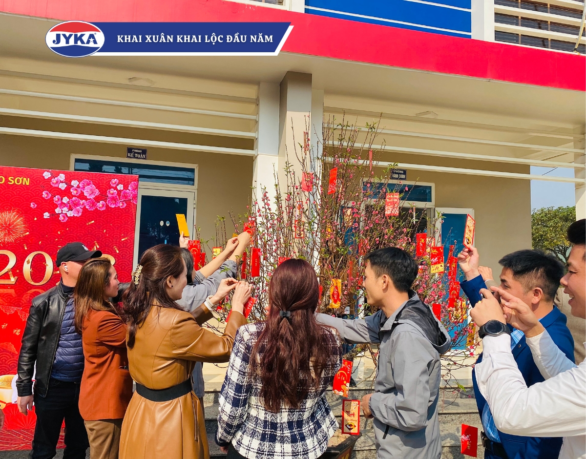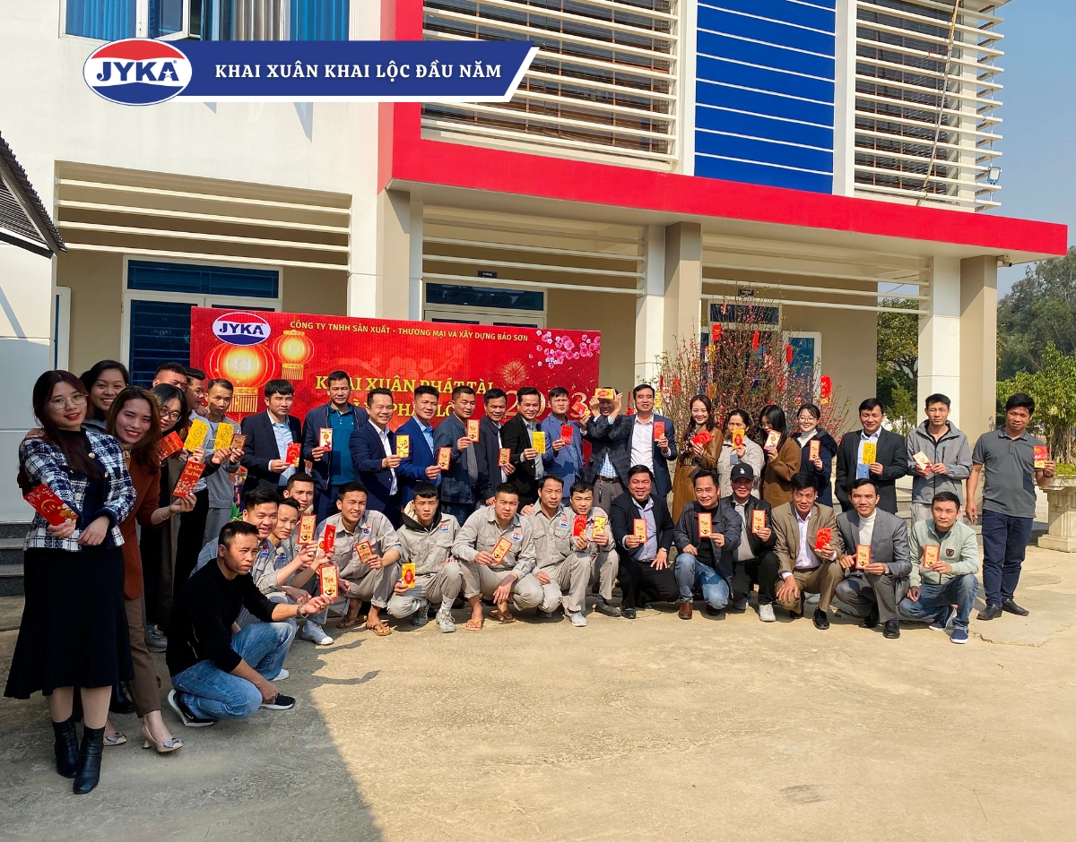 Trong ngày khai xuân, Ban lãnh đạo sơn JYKA LÌ XÌ PHÁT LỘC cho cán bộ công nhân viên, cùng nhau nâng ly chúc mừng và trao nhau những lời chúc tốt đẹp thể hiện sự quyết tâm, đoàn kết, đồng lòng cho năm mới, chúc công ty thành công, tăng trưởng đột phá và phát triển bền vững.