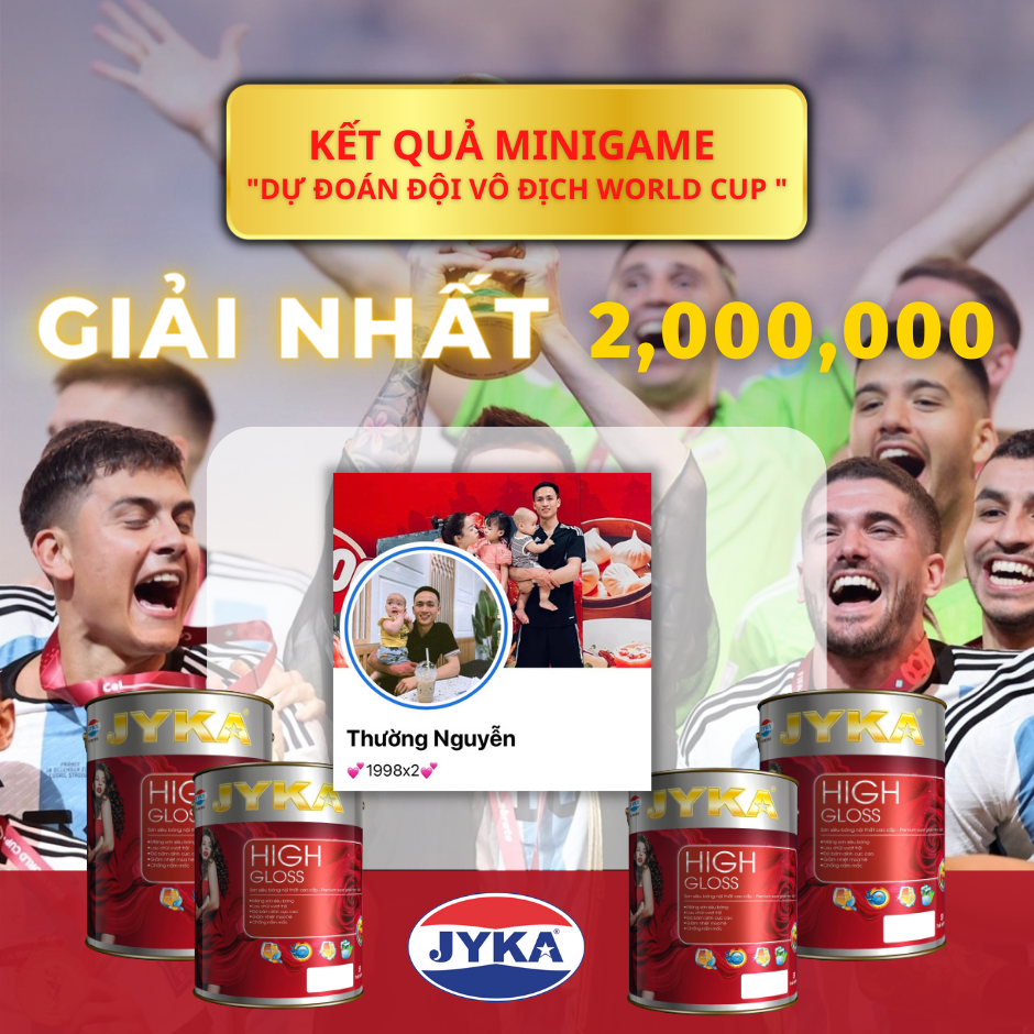 Sơn JYKA cũng xin chúc mừng 2 người chơi dự đoán nhanh và chính xác nhất đội tuyển vô địch World Cup 2022.