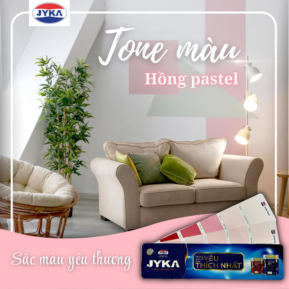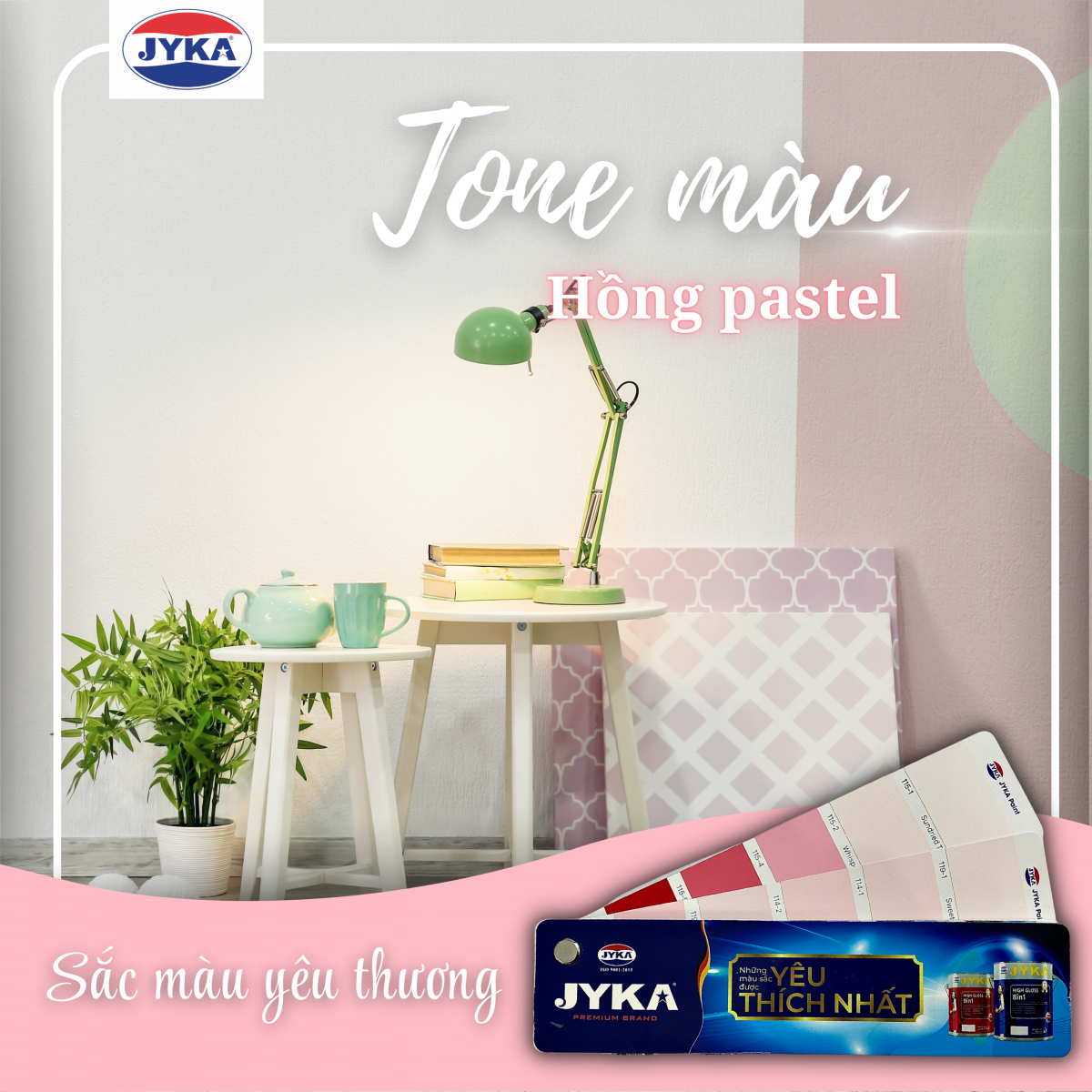 Khi tình yêu xuất hiện, cuộc sống của bạn sẽ chuyển từ màu xám sang hồng một cách kỳ diệu. Cuộc sống không phải lúc nào cũng màu hồng, chúng ta không thể lựa chọn điều đó, nhưng bạn có thể lựa chọn Tone màu Hồng Pastel phối trắng cho ngôi nhà của mình. Đây là gam màu của sự yêu thương, giúp con người phần nào giảm đi sự căng thẳng mệt mỏi sau một ngày dài làm việc. Hãy để ngôi nhà của bạn tràn ngập màu sắc yêu thương. Với những sản phẩm sơn chất lượng, được sản xuất theo công nghệ mới hiện đại hàng đầu của Đức, Sơn Jyka mong muốn sơn những công trình đẹp nhất, bảo vệ tối ưu ngôi nhà của bạn.