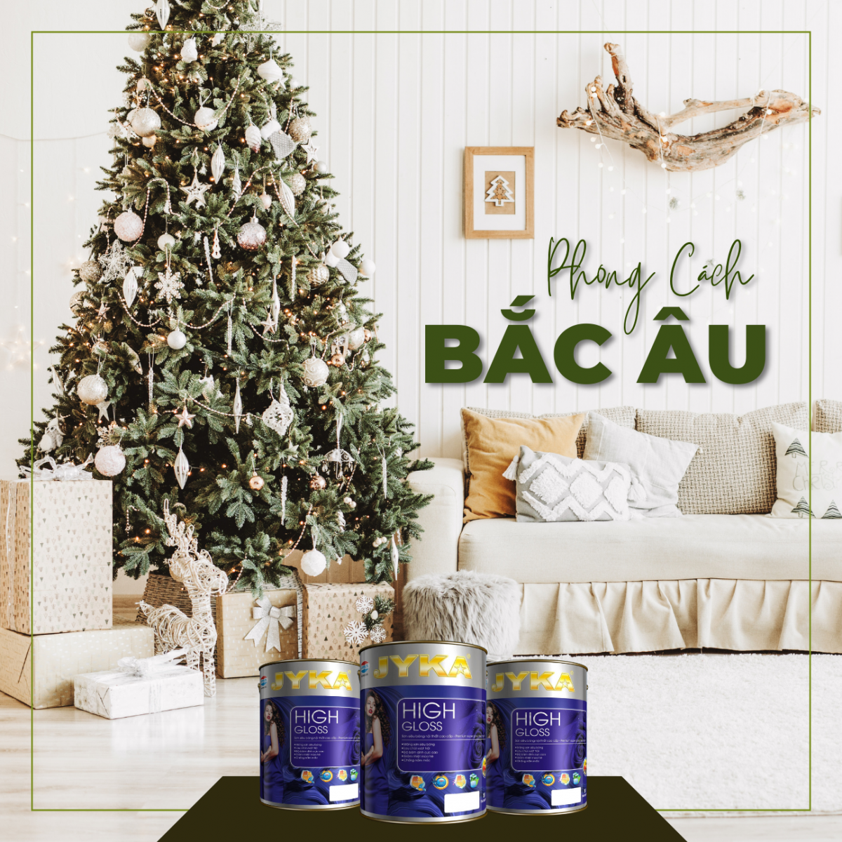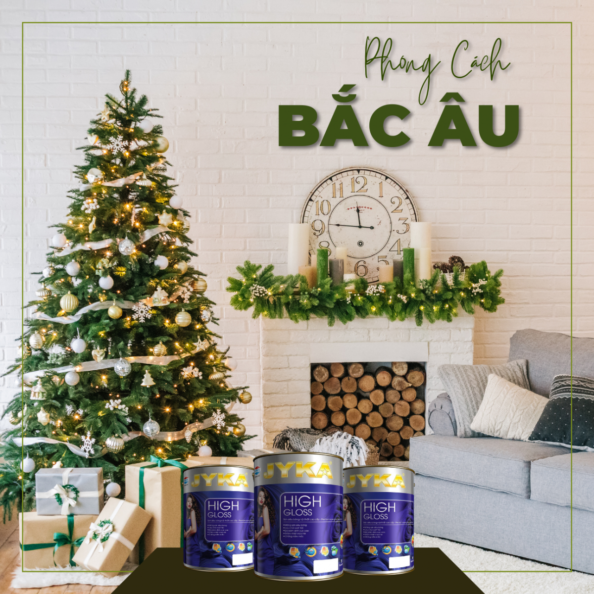 Trong phong cách Bắc Âu, màu trắng luôn là màu được sử dụng nhiều. Dùng màu trắng, màu be, thêm chút màu xám và màu đen để tạo sự tương phản. Cuối cùng, thêm vào bảng màu một màu xanh lá để hoàn thiện bảng màu của bạn, màu xanh lá là một màu bắt buộc trong mùa Giáng sinh.