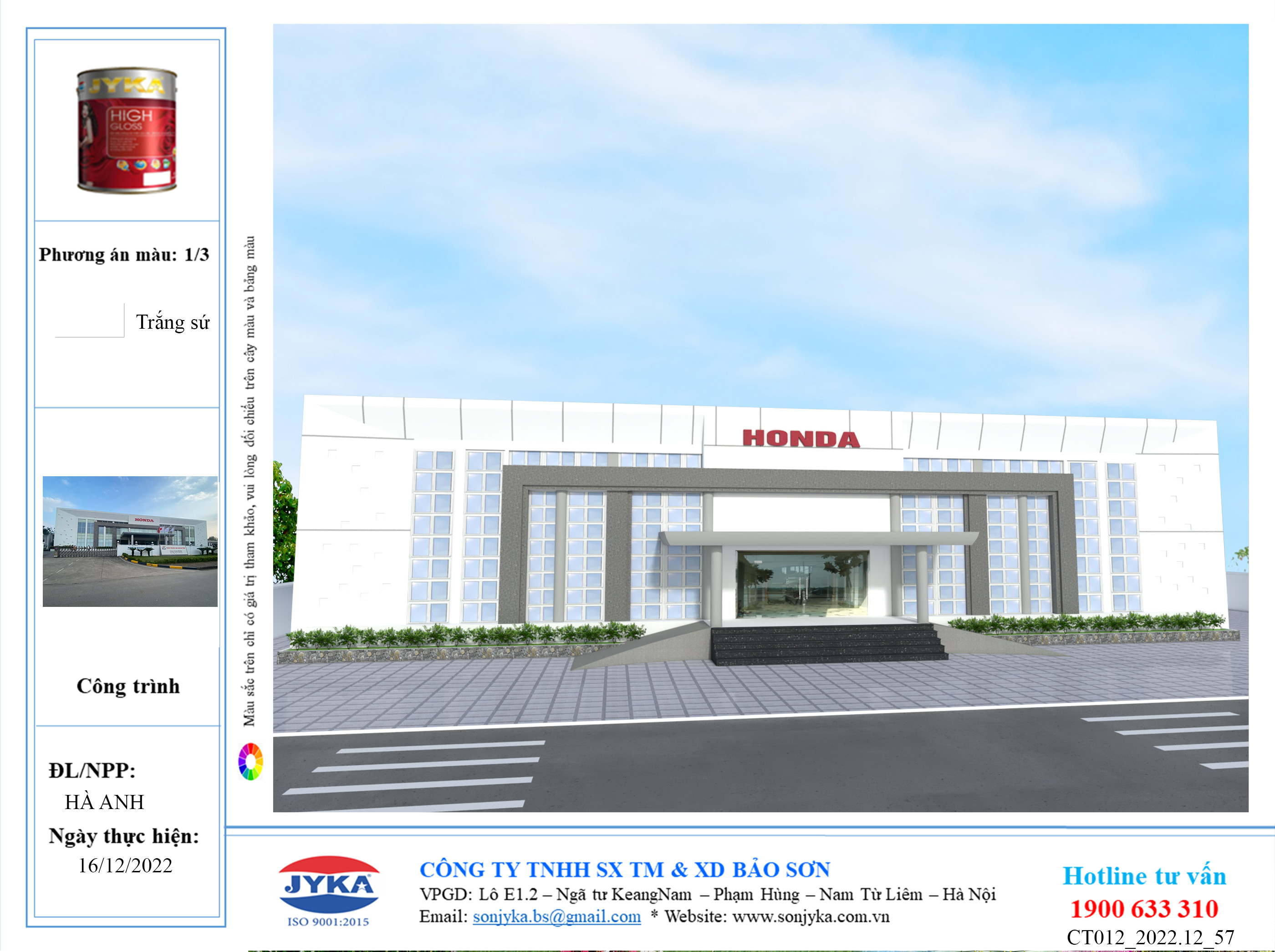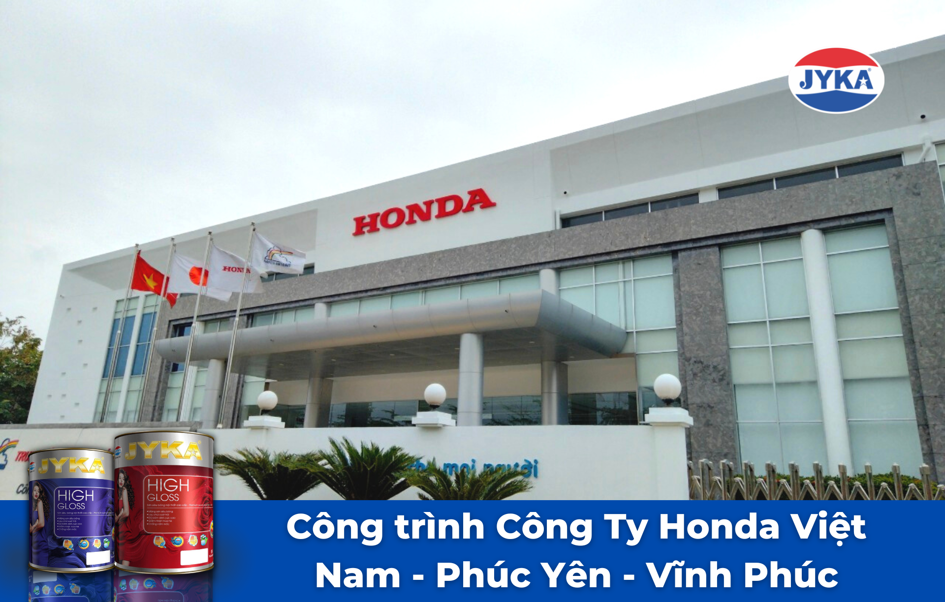 Hãng sơn JYKA cùng đại lý sơn đại lý Sơn Hà Anh - Sơn Lôi - Bình Xuyên - Vĩnh Phúc rất vui khi được đồng hành cùng dự án, sơn tu sửa Công ty Honda Vĩnh Phúc. Chúng tôi mang đến cho đối tác của mình những công cụ chuyên nghiệp theo đúng nhu cầu của họ để tạo ra những kết quả hoàn hảo. Niềm vui của khách hàng là niềm vui của đối tác, thành tựu của các đối tác là niềm tự hào của chúng tôi.