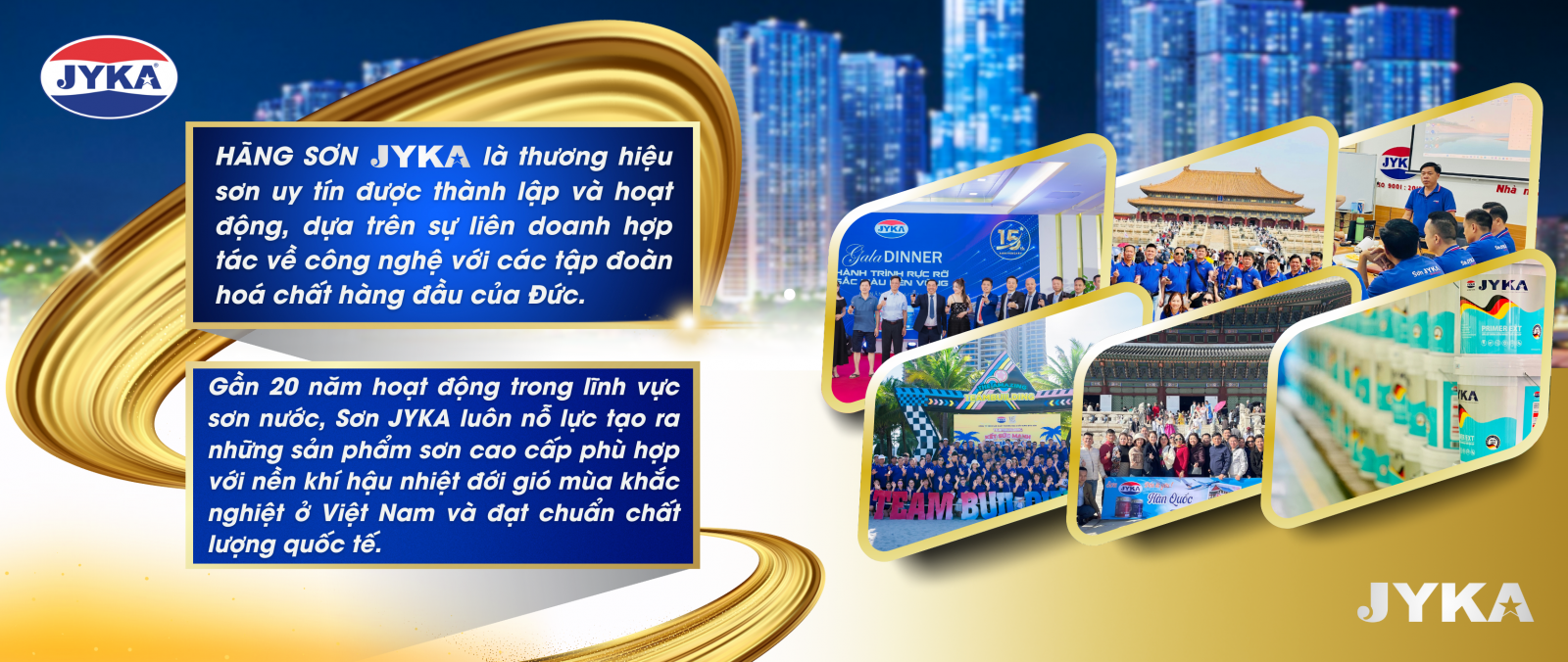 Với những bước đi vững chắc cùng kế hoạch kinh doanh sáng suốt năm 2019 vừa qua Sơn JYKA đã kỷ niệm 10 năm thành lập, để đánh dấu một chặng đường thành công vượt bậc và để luôn là nhãn hiệu hàng đầu JYKA Paint, đã liên tục cải tiến công nghệ nghiên cứu sản phẩm để tung ra thị trường danh mục sản phẩm đa dạng nhằm đáp ứng mọi nhu cầu của khách hàng như Sơn trang trí, Sơn phủ bề mặt gỗ, sản phẩm công nghiệp nặng, sơn trang trí đặc biệt, hóa chất xây dựng, sơn thơm, đặc biệt Sơn JYKA còn cho ra đời hệ thống pha màu Sơn tự động "JYKA COLOR WORLD" nhằm giúp khách hàng chọn được màu Sơn ưng ý nhất, những dự án cao ốc tại Việt Nam, Sơn JYKA đã được thực hiện chiếm 30%.