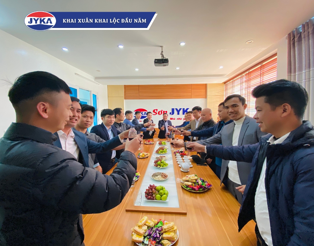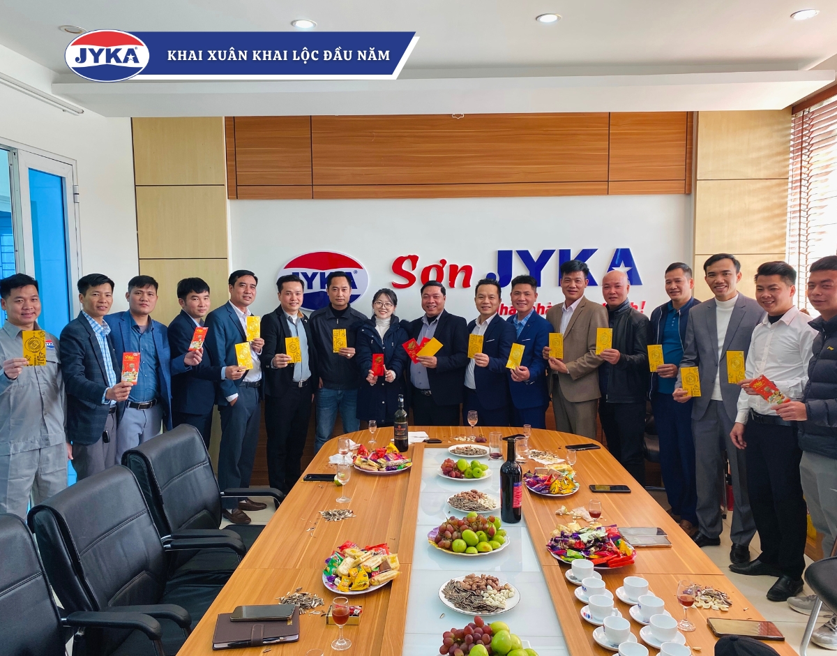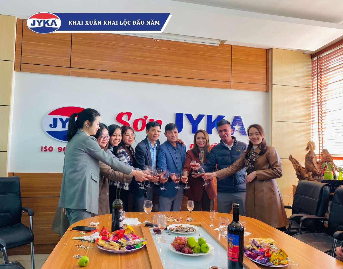 Trong ngày khai xuân, Ban lãnh đạo sơn JYKA LÌ XÌ PHÁT LỘC cho cán bộ công nhân viên, cùng nhau nâng ly chúc mừng và trao nhau những lời chúc tốt đẹp thể hiện sự quyết tâm, đoàn kết, đồng lòng cho năm mới, chúc công ty thành công, tăng trưởng đột phá và phát triển bền vững.