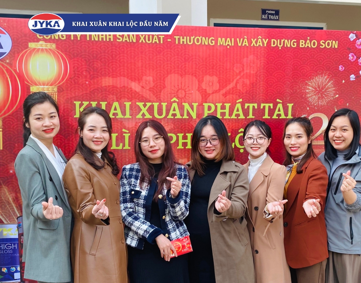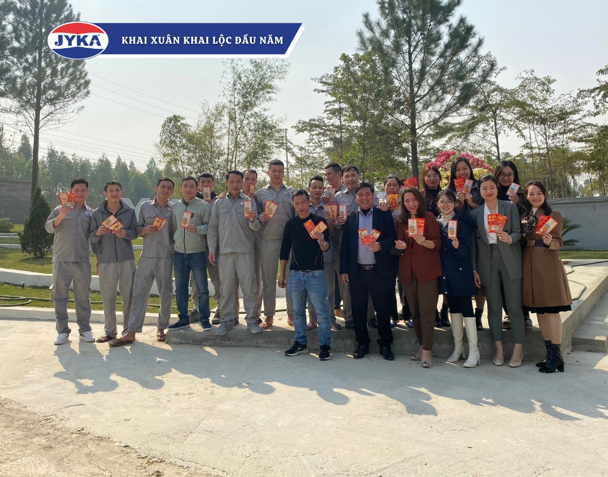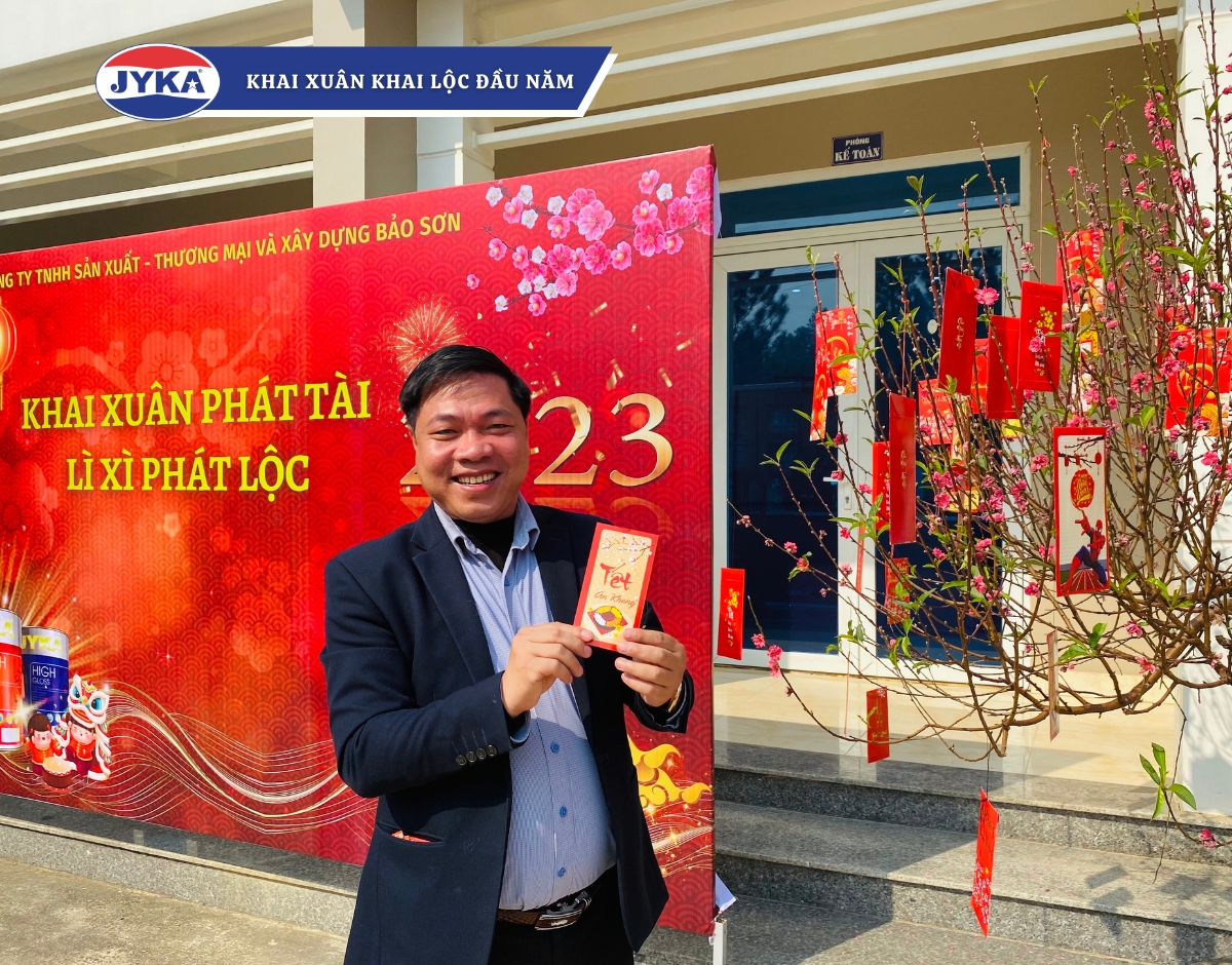 Trong ngày khai xuân, Ban lãnh đạo sơn JYKA LÌ XÌ PHÁT LỘC cho cán bộ công nhân viên, cùng nhau nâng ly chúc mừng và trao nhau những lời chúc tốt đẹp thể hiện sự quyết tâm, đoàn kết, đồng lòng cho năm mới, chúc công ty thành công, tăng trưởng đột phá và phát triển bền vững.