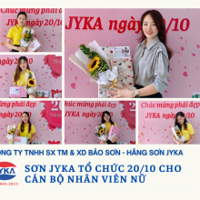 Nhân dịp sắp đến dịp lễ kỷ niệm ngày 20-10, xin gửi đến chị em phụ nữ Việt Nam nói chung, chị em phụ nữ Công ty TNHH SX TM&XD Bảo Sơn – Hãng Sơn JYKA nói riêng lời chúc sức khỏe và lời cảm ơn chân thành nhất. Hôm nay 20-10-2022, Sơn JYKA tổ chức chương trình "Chào mừng 20-10" cho toàn thể các bộ công nhân viên nữ của Công ty.
