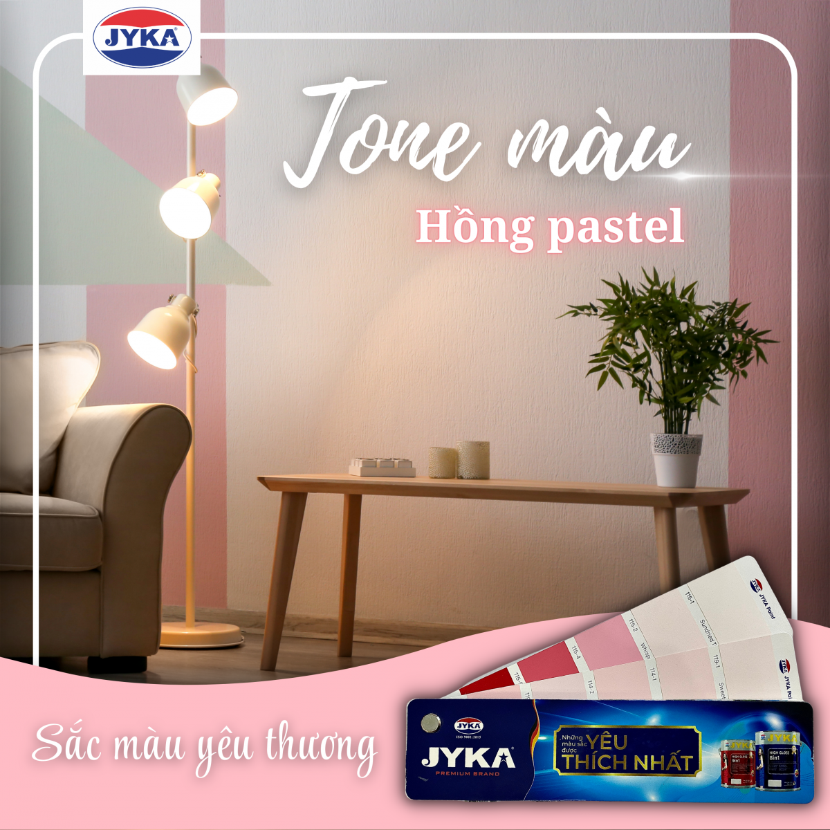 Khi tình yêu xuất hiện, cuộc sống của bạn sẽ chuyển từ màu xám sang hồng một cách kỳ diệu. Cuộc sống không phải lúc nào cũng màu hồng, chúng ta không thể lựa chọn điều đó, nhưng bạn có thể lựa chọn Tone màu Hồng Pastel phối trắng cho ngôi nhà của mình. Đây là gam màu của sự yêu thương, giúp con người phần nào giảm đi sự căng thẳng mệt mỏi sau một ngày dài làm việc. Hãy để ngôi nhà của bạn tràn ngập màu sắc yêu thương. Với những sản phẩm sơn chất lượng, được sản xuất theo công nghệ mới hiện đại hàng đầu của Đức, Sơn Jyka mong muốn sơn những công trình đẹp nhất, bảo vệ tối ưu ngôi nhà của bạn.