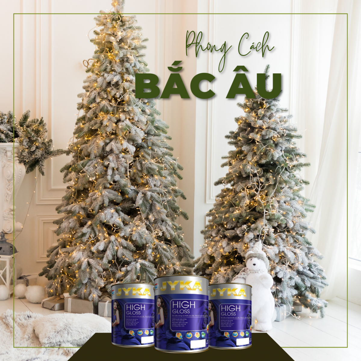 Trong phong cách Bắc Âu, màu trắng luôn là màu được sử dụng nhiều. Dùng màu trắng, màu be, thêm chút màu xám và màu đen để tạo sự tương phản. Cuối cùng, thêm vào bảng màu một màu xanh lá để hoàn thiện bảng màu của bạn, màu xanh lá là một màu bắt buộc trong mùa Giáng sinh.